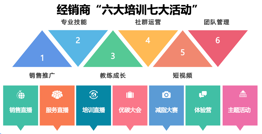 “三大訓(xùn)練營”和“教練培訓(xùn)”應(yīng)作為“輕天下”分銷培訓(xùn)的基礎(chǔ),“優(yōu)碳 減脂體驗營”作為用戶教育的基礎(chǔ),“優(yōu)碳營養(yǎng)大會”作為經(jīng)銷商傳幫帶的“大亮點”,點亮B端分銷裂變和C端消費忠誠!