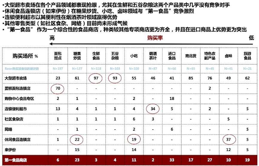 第一食品隸屬于“大食品行業”,其產品涵蓋面包甜點、糖果炒貨、生鮮食品、五谷雜糧、小吃、煙酒茶葉等多種食品類別,已經重度參與了食品零售行業的競爭,“第一食品”在品類齊全性、豐富性及進口商品等方面占據競爭優勢。