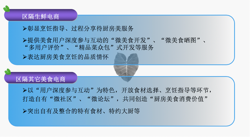 項目組推進項目策劃時,深度剖析了生鮮數字零售行業的經營難題,洞察產業級增長機會,認為:做好“雙重區隔”,既與此時的生鮮電商進行區隔,也與生鮮電商的下游合作伙伴——“美食電商”進行區隔,真正突出社區參與、品牌互動的特色,真正讓生鮮電商和生鮮門店、美食服務等完美結合。