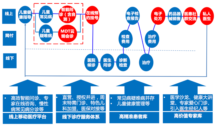 以青蘋果為代表的兒童專科醫(yī)療,發(fā)力移動醫(yī)療平臺領域,強化醫(yī)患在線溝通、微信公眾號預約、線下醫(yī)院導流等,匯聚兒科醫(yī)療資源,推動線上線下的O2O經(jīng)營,活化兒科移動醫(yī)療服務。
