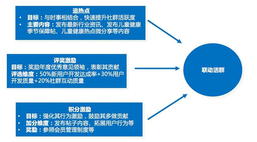 第四步:聯(lián)動活群。與時事相結合,追社會熱點;對社群意見領袖進行評選,獎勵年度優(yōu)秀意見領袖,表彰其優(yōu)質貢獻,并以“行為積分”等強化醫(yī)學帖設定,提升患者社群參與積極性。
