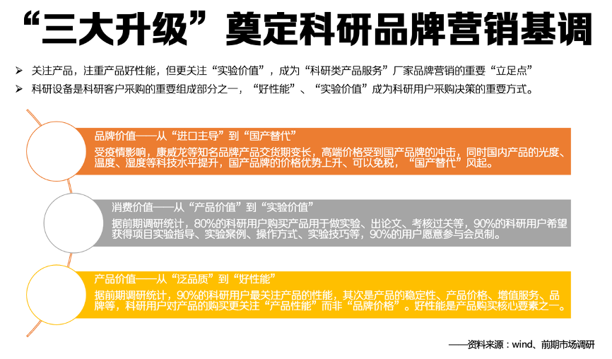 順應“國產替代”興起的大潮,抓住“三大升級”的科研品牌營銷基調,創造“高性能產品”,點亮產品的“實驗室價值”,科研品牌,才能迅猛崛起。