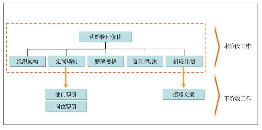 基于品牌建設需求及全渠道分銷推進,項目組建議企業持續優化營銷組織及營銷管理體系,提升營銷團隊戰斗力。