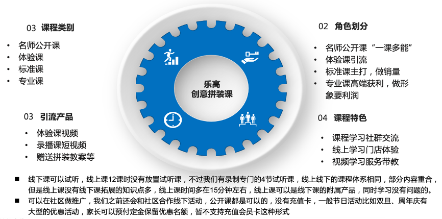 凱爾樂產(chǎn)品經(jīng)營“有重點(diǎn)有主題”,以“名師課”為主打,吸引VIP會(huì)員,樹立“創(chuàng)意拼搭 名師指導(dǎo)”的品牌形象;以“體驗(yàn)課視頻”、“錄播課視頻”、優(yōu)惠券等為引流方式,贈(zèng)送拼裝教案、體驗(yàn)課指導(dǎo)等,全渠道引流;更以課程學(xué)習(xí)、社群交互、線上學(xué)習(xí)等點(diǎn)亮“課程創(chuàng)意”,讓“樂高創(chuàng)意拼裝課”更有價(jià)值,更有吸引力。