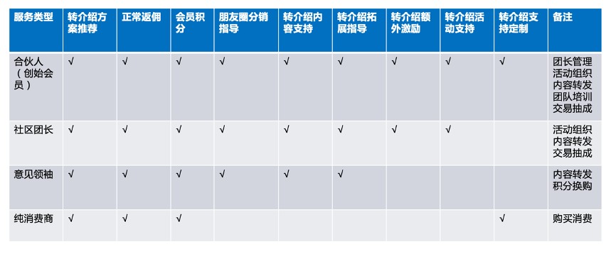 凱爾樂“創(chuàng)意拼搭課”的高會(huì)員轉(zhuǎn)介紹,采用“分合伙人級別”進(jìn)行“轉(zhuǎn)介紹激勵(lì)”。其對合伙人(創(chuàng)始會(huì)員)主要進(jìn)行轉(zhuǎn)介紹方案推薦、返傭、會(huì)員積分、拓展支持等全方位幫扶,激活其全方位人脈資源;對社區(qū)團(tuán)長則更多給予返傭、會(huì)員積分、資訊轉(zhuǎn)發(fā)等重點(diǎn)支持。同時(shí)積極吸納意見領(lǐng)袖、純消費(fèi)商,激活會(huì)員的內(nèi)容轉(zhuǎn)發(fā)、積分換購等,激活合作伙伴的“個(gè)體能量”。
