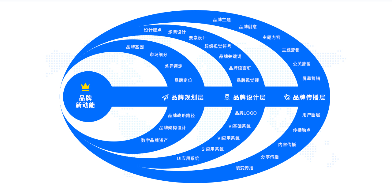 3、品牌傳播層:基于品牌規劃和品牌設計,全面亮化品牌傳播。設計品牌主題和品牌創意,策劃主題內容和主題營銷,創新公關營銷和屏幕營銷形式,同時鎖定“用戶圈層”,亮化傳播觸點,細化內容傳播,推動基于用戶需求的分享傳播和裂變傳播。