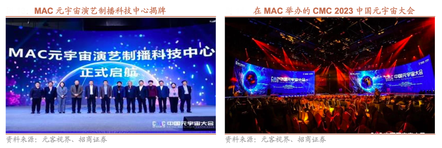 經(jīng)典案例:根據(jù)元客視界、招商證券等綜合資訊表明,Meta Arts Center (簡(jiǎn)稱 MAC)是中國(guó)移動(dòng)·咪咕和凌云光·元客視界共同承建運(yùn)營(yíng)的元宇宙演藝制播科技中心,是業(yè)內(nèi)首個(gè)擁有光場(chǎng)重建、全身動(dòng)作捕捉、超高清 XR+VP 虛擬制作的全棧制作服務(wù)能力的元宇宙數(shù)字內(nèi)容創(chuàng)作基地。MAC 前身是北京冬奧會(huì)冰壺訓(xùn)練館,中心擁有超 7000 m²+專業(yè)拍攝場(chǎng)地, 挑高 12m ,已成功承接舉辦超千人規(guī)模的 CMC 2023 中國(guó)元宇宙大會(huì)。