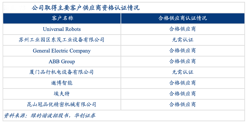 經典案例:根據綠的諧波招股書、華創證券等綜合資訊表明,綠的諧波公司自主研發的精密諧波減速器推向市場后,經過多家機構和企業的檢測試用,在精度、 壽命、穩定性、噪音等方面,均達到國內領先水平。除了實現向國內主流機器人廠商穩定供貨外,公司產品也取得了諸如 Universal Robots、Kollmorgen、Varian Medical System 等國際知名廠商的認可,并實現了向國際主流機器人廠商之一 Universal Robots 批量出口供貨。