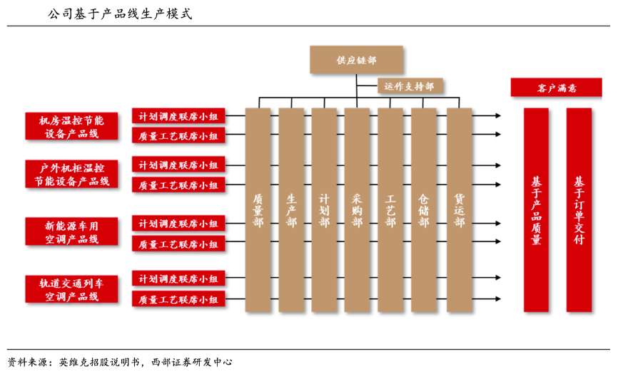 經典案例:根據英維克招股說明書、西部證券研發中心等綜合資訊表明,英維克扎根于溫控節能設備領域,利用統一技術和供應鏈平臺,多細分領域業務布局,并基于產品線組織生產。通過共享研發、采購、服務等環節,提升產品研發速度,實現規模化采購,以此“快速推出優質產品”,力爭每個細分市場成為龍頭或主流。