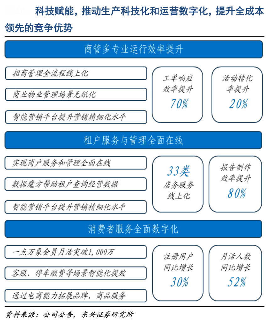經典案例:根據公司公告、東興證券研究所等綜合資訊表明,華潤萬象生活在2022 年整合資源打通各業態會員系統,發布自有積分品牌“萬象星”,涵蓋營銷、康養、長租、酒店、文體、影業、商業與物業等八大業態,實現各業 態客戶的身份通、積分通和權益通,持續提升會員滿意度與消費貢獻度。截至 2023 年底,萬象星會員總量同比增長 36%至 4,625 萬人。