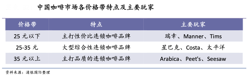經典案例:根據浦銀國際等綜合資訊表明,愈加復雜的消費需求和消費形式使中國現制咖啡行業從傳統的綜合連鎖咖啡模式向不同的方向分化出新的細分賽道,比如主打性價比的大眾連鎖現制咖啡品牌以及主打咖啡品質和服務體驗的精品連鎖咖啡品牌。