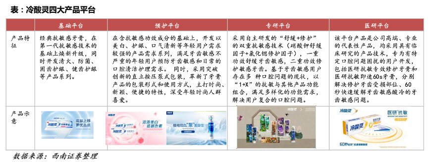 經典案例:根據西南證券等綜合資訊表明,冷酸靈牙膏價格定位大眾消費品牌,注重性價比,產品結構優化空間充足。從各品牌終端零售價格對比來 看,冷酸靈在高中低端價格帶均有產品布局,最高端產品為醫研抗敏第三代技術生物玻璃陶瓷技術產品, 與舒適達同代際技術產品定價接近,為40元左右。