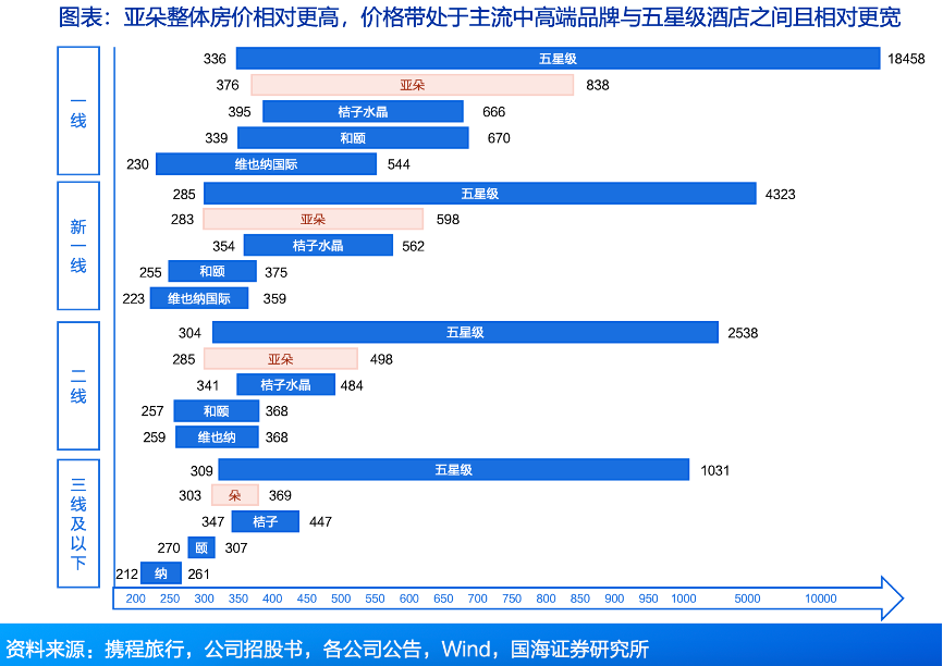 經典案例:根據公司招股書、攜程旅行、各公司公告、wind、國海證券研究所等綜合資訊表明,亞朵高品質的產品服務帶來經營穩健,疫情期間展現強韌性,疫后復蘇實現高彈性,為此消費者愿意付出溢價,亞朵提價能力更強。疫情三年,亞朵RevPAR恢復度明顯 優于其他集團的中高端品牌,亞朵RevPAR平均恢復度約82%,高于錦江/華住/首旅(中高端)的74%/77%/61%;疫后階段,亞朵高彈性復蘇,2023H1的恢復度 約117%,高于錦江/華住/首旅(中高端)的93%/112%/91%。