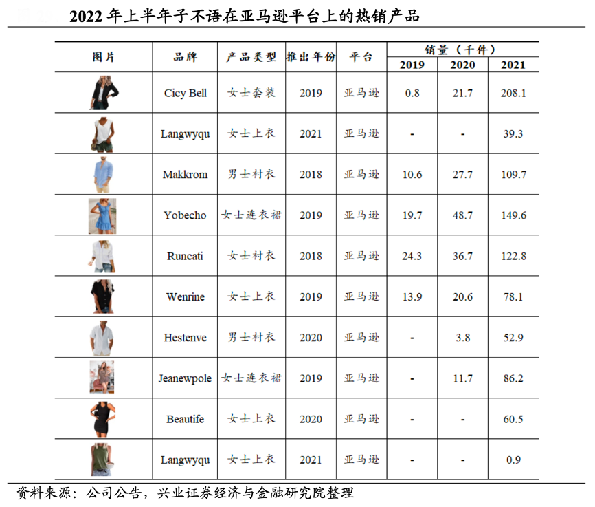 經(jīng)典案例:根據(jù)公司公告、興業(yè)證券經(jīng)濟與金融研究院等綜合資訊表明,子不語采取多品牌運營模式,重視爆品的打造,截至 2022 年 6 月 30 日,已經(jīng)孵化有超 300 個品牌,其中有 87 家年營收超過千萬元的爆款品牌,包括女裝、男裝、鞋履、運 動服等多種品類;。2022年上半年,子不語熱銷產(chǎn)品的營收貢獻達到 78.8%以上,為公司業(yè)績快速發(fā)展的主要驅(qū)動力。