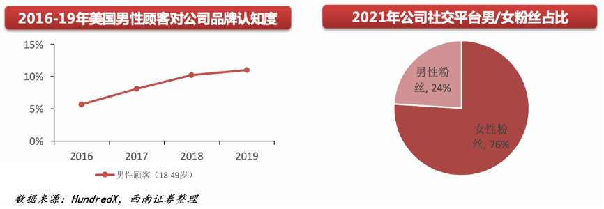 經(jīng)典案例:根據(jù)HundredX、西南證券等綜合資訊表明,結(jié)合美國咨詢公司HundredX對Lululemon美 國消費者市場調(diào)查發(fā)現(xiàn),Lululemon 男性消費者的 數(shù)量占比在逐步增長,從2021年1月的14.8%提升至同年11月的19.7%。其中,有越來越多的男性消 費者會因為Lululemon的剪裁、舒適度、時尚度購 買產(chǎn)品。同時年齡段在18-49歲的男性消費者對Lululemon名牌的認知度也有了較高的提升。