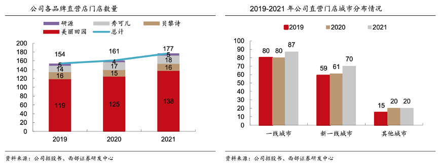 經(jīng)典案例:根據(jù)公司招股書(shū)、西部證券研究中心等綜合資訊表明,美麗田園公司率先在人口眾多且消費(fèi)水平較高的一線(xiàn)城市建立門(mén)店,且門(mén)店大多數(shù)位于黃金地段,是高客流量、高曝光率店鋪。根據(jù)招股書(shū)數(shù)據(jù),截至 22 年6 月 30 日,公司在北京、上海、深圳三個(gè)一線(xiàn)城市擁有 84 家門(mén)店,在新一線(xiàn)城市擁有 73 家門(mén)店。同時(shí)設(shè)立美麗田園小程序,讓客戶(hù)線(xiàn)上預(yù)約,及時(shí)查看門(mén)店和產(chǎn)品服務(wù)信息,并參與線(xiàn)上營(yíng)銷(xiāo)活動(dòng)。