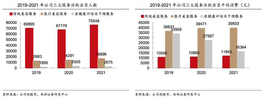 按活躍會(huì)員平均消費(fèi)來(lái)看,公司傳統(tǒng)美容服務(wù)的活躍會(huì)員平均消費(fèi)金額超過(guò) 1 萬(wàn)元,醫(yī)療美容服務(wù)活躍會(huì)員平均消費(fèi)金額接近 4 萬(wàn)元,均在業(yè)內(nèi)處于較高水平。