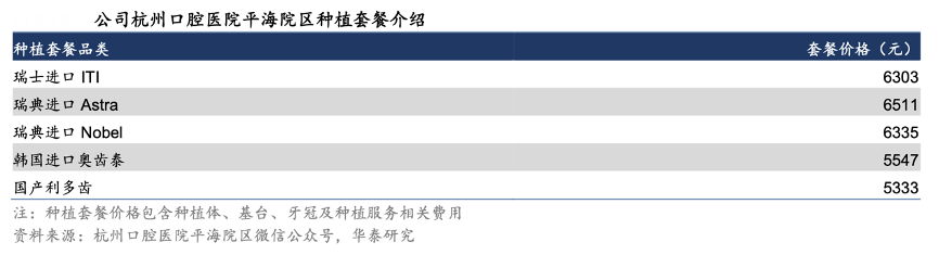經典案例:根據杭州口腔醫院平海院區微信公眾號、華泰研究等綜合資訊表明,為進一步滿足不同消費能力患者的種植需求,通策醫療公司在集采執行大背景下根據市場細分進行差異化定價,推出了高中低口腔超市概念;以杭州口腔醫院平海院區為例,其目前已正式執行集采價格并推出系列中高端集采種植套 餐(價格區間主要分布在5000-7000 元 VS 集采前大多介于 12000-14000 元)。