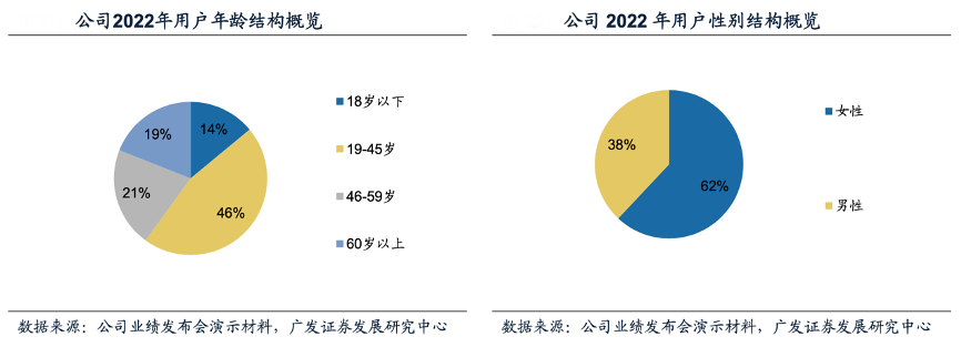 經典案例:根據公司業績發布會演示材料、廣發證券發展研究中心等綜合資訊表明,2019年起,固生堂公司正式推行會員制度,會員專屬特權包括定制化的醫療健康解決方案 及產品計劃、貴細藥材折扣價、咨詢費折扣券及醫療健康服務的綠色通道。公司用戶中,年齡19~45歲占46%,以女性、中青年白領人群為主,消費能力強,對服務品質的要求較高。