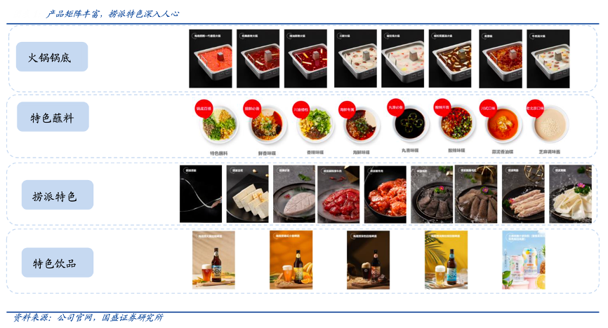 經(jīng)典案例:根據(jù)公司官網(wǎng)、國盛證券研究所等綜合資訊表明,海底撈以極質(zhì)服務(wù)深入人心,產(chǎn)品矩陣豐富,其賓至如歸的貼心服務(wù)提高了海底撈的知名度,如特色撈面表演,川劇變臉表演、美 甲護(hù)手服務(wù)等。產(chǎn)品矩陣豐富,火鍋店不斷創(chuàng)新鍋底、調(diào)料、小吃、飲品等。
