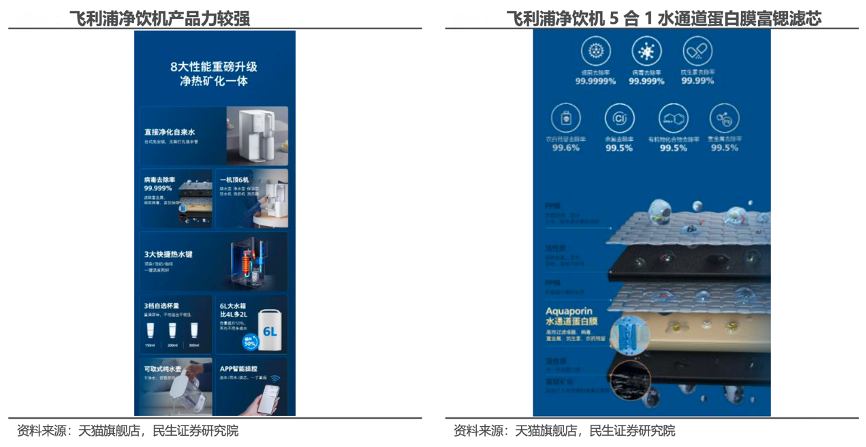 經(jīng)典案例:根據(jù)招股說明書、民生證券研究院等綜合資訊表明,飛利浦品牌知名度顯著賦能公司凈水產(chǎn)品銷售,此外飛利浦凈水類產(chǎn)品迭代速度也在不斷加快,多個水健康類產(chǎn)品在市場處于領(lǐng)先地位,市場反應(yīng)良好。