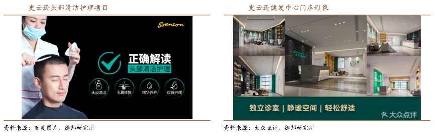 經(jīng)典案例:根據(jù)百度圖片、大眾點(diǎn)評、德邦研究所等綜合資訊表明,史云遜依賴于雍禾醫(yī)療積攢的會(huì)員體系進(jìn)行發(fā)展,前期以給植發(fā)患者做增值服務(wù)為主,以店中店形式進(jìn)行推廣,隨著養(yǎng)發(fā)人群擴(kuò)充、養(yǎng)發(fā)意識提升,后續(xù)史云遜將以獨(dú)立店模式進(jìn)行擴(kuò)展,由點(diǎn)及面形成一個(gè)城市“1-2 家植發(fā)機(jī)構(gòu)+N 家史云遜”模式。