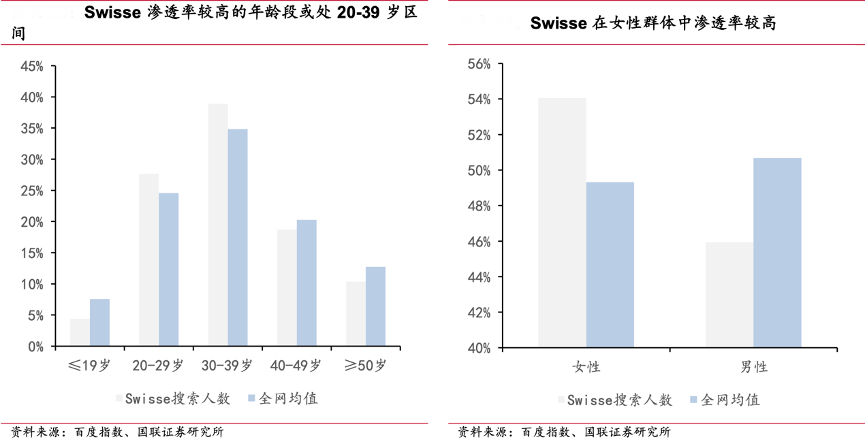 經(jīng)典案例:根據(jù)百度指數(shù)、國(guó)聯(lián)證券研究所等綜合資訊表明,Swisse主要客群畫(huà)像或?yàn)?20-39 歲區(qū)間女性消費(fèi)者,口服美容系列貼近主要客群需 求,產(chǎn)品定位上更細(xì)分,如鎖水補(bǔ)水的“水光瓶”、打造輪廓線的“超光瓶等,終端表現(xiàn) 較為突出,23Q4 上市的超光瓶在 2023 年雙十一期間 GMV 高達(dá) 776 萬(wàn),超光瓶、膠原水光瓶銷(xiāo)量位居全平臺(tái)第一。