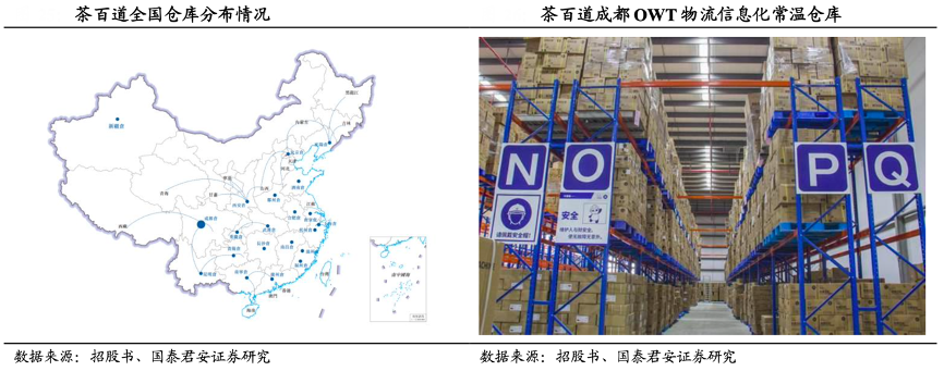 經(jīng)典案例:根據(jù)招股書、國泰君安證券研究等綜合資訊表明,截至 2023 年 12 月 31 日,茶百道公司綜合性冷鏈倉儲(chǔ)及配送網(wǎng) 絡(luò)包括 21 個(gè)多溫倉庫,由 20 個(gè)中心倉及 1 個(gè)前置倉組成,覆蓋面積約 80,000 平方米。公司實(shí)施訂單管理 (OMS)、倉儲(chǔ)管理及運(yùn)輸管理(OWT)系統(tǒng),調(diào)度一支由大約 300 輛來自第三方移動(dòng)服務(wù)提供商的多溫運(yùn)輸車輛組成的車隊(duì),每天能夠向數(shù)千家門店運(yùn)送新鮮材料,為約 92%的茶百道門店提供每周兩次或以上的配送服務(wù)。