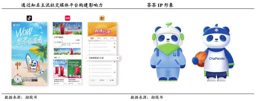 經(jīng)典案例:根據(jù)招股書、國泰君安證券研究等綜合資訊表明,茶百道通過品牌 IP“茶茶”提升品牌形象,設(shè)計(jì)并推出 “茶茶”表情包、“茶茶”特色創(chuàng)意商品,并與 KOL 及網(wǎng)紅進(jìn)行合作。