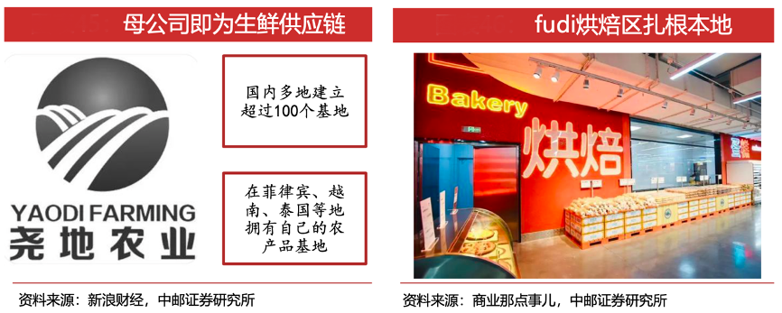經典案例:根據新浪財經、商業那點事兒、中郵證券研究所等綜合資訊表明,fudi供應鏈王牌為母公司北京堯地農業,成立于 2014年的堯地農業是一家集生鮮零售、智慧農業、倉儲物流等業態的農業科技公司,目前種植面積已達26.9萬畝。因此,fudi果蔬農產品可從母公司種植基地直采,省去中間環節并全程在公司體系內把控,讓fudi的生鮮產品相比其他零售店更具競爭力。