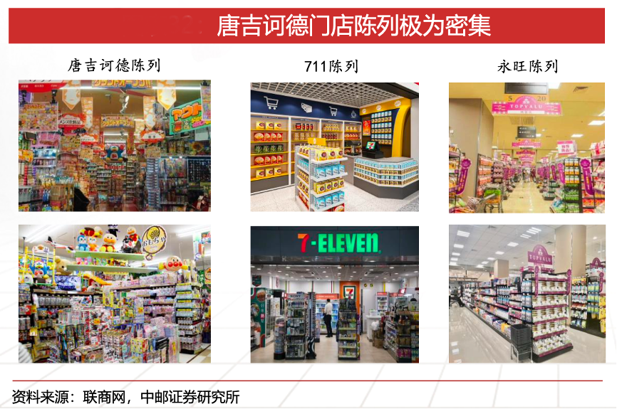 經典案例:根據聯商網、中郵證券研究所等綜合資訊表明,唐吉訶德店內1000-3000平米的空間可陳列4-6萬個SKU,為消費者提供了廣闊的“探寶”空間,弱化消費者理性思考時間,誘使消費者深入商場內部挑選心儀但非剛需商品,以“大量供給創造超額需求”。