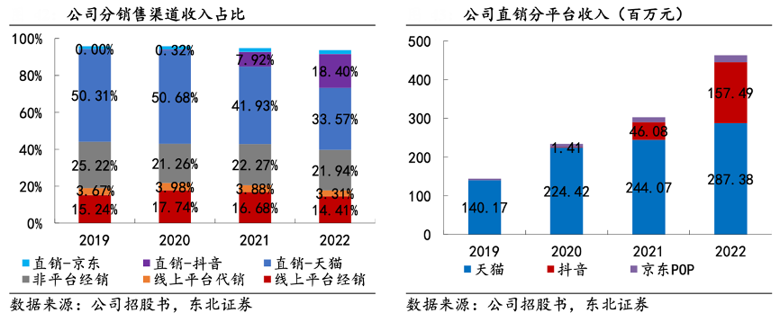 經(jīng)典案例:根據(jù)公司招股書、東北證券等綜合資訊表明,潤(rùn)本目前以天貓、京東、拼多多和抖音等電商平臺(tái)銷售為主,其中最早布局天貓平臺(tái),通過(guò)長(zhǎng)期渠道建設(shè),逐漸掌握成熟的線上運(yùn)作模式,并積累起龐大的線上客戶資源,市場(chǎng)份額快速提升,潤(rùn)本品牌 2020-2022 年連續(xù)三年在天貓平臺(tái)的蚊香液銷售額排名第一,市占率分別為 16.42%、18.32%、19.99%。