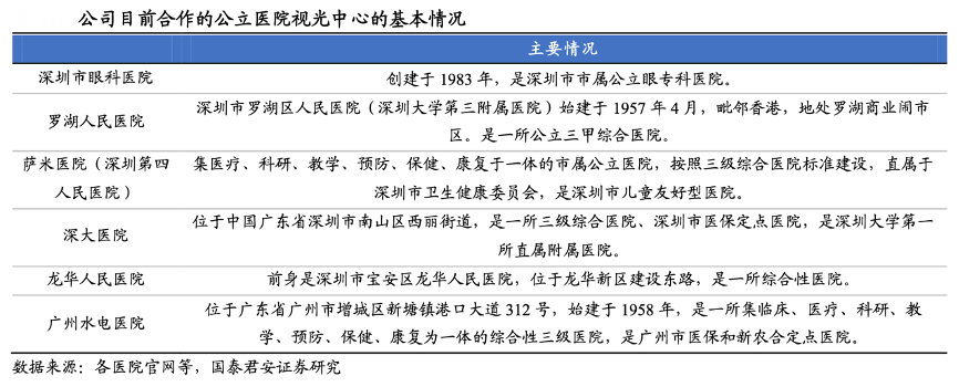 經(jīng)典案例:根據(jù)各醫(yī)院官網(wǎng)、國泰君安研究等綜合資訊表明,博士眼鏡公司已同深圳市羅湖區(qū)人民醫(yī)院、深圳大學(xué)總醫(yī)院及深圳市大鵬新區(qū)葵涌人民醫(yī)院等開展視光相關(guān)項目合作,并與深圳市羅湖醫(yī)院集團建立戰(zhàn)略合作,探索門店、社康中心、醫(yī)院的三位一體眼健康服務(wù)模式。