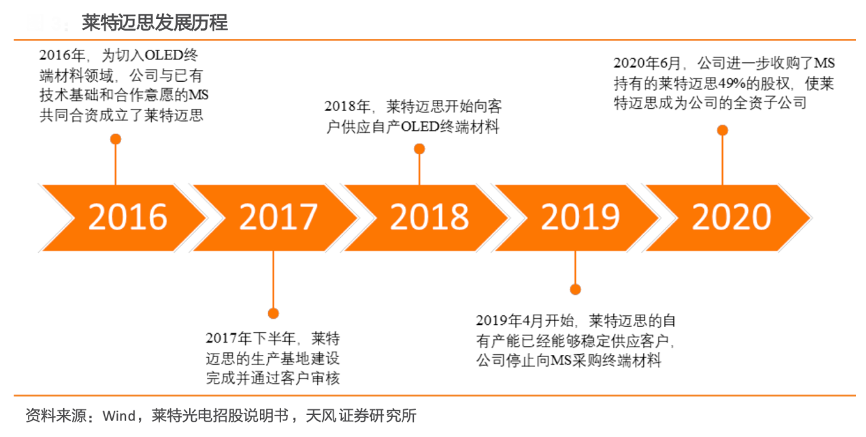 經典案例:根據wind、萊特光電招股說明書、天風證券研究所等綜合資訊表明,經過多年的發展,萊特邁思在 MS 原有技術的基礎上,通過理論與實踐的結合,不斷突破 創新,形成了具有自身特色的核心技術體系。其完全憑借自身的研 發能力不斷提升產品性能并拓展應用領域,成功開發出了新一代的 Red Prime、Green Prime、 Blue Prime、Red Host、Green Host 等材料。這一系列舉措不僅增強了公司在 OLED 材料市場的競爭力,也標志著公司在自主研發和創新方 面的堅實步伐。