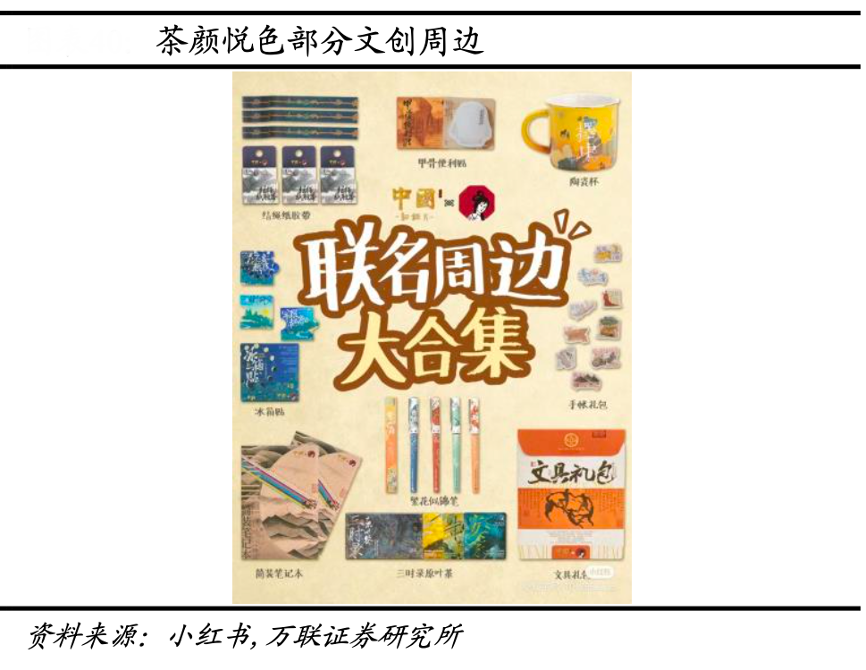 經(jīng)典案例:根據(jù)小紅書、萬聯(lián)證券研究所等綜合資訊表明,除現(xiàn)制茶飲銷售之外,茶顏悅色還創(chuàng)立了單獨的零售品牌店“知乎,茶也”,擁有自主設(shè)計的文創(chuàng)產(chǎn)品,出售包括茶杯、雨傘、旅行杯、手機貼、拼 圖、車線本、明信片等涉及日常出行的周邊產(chǎn)品,以此滿足年輕人多元化的個性訴求, 實現(xiàn)“好茶味”和“潮文化”的完美融合。