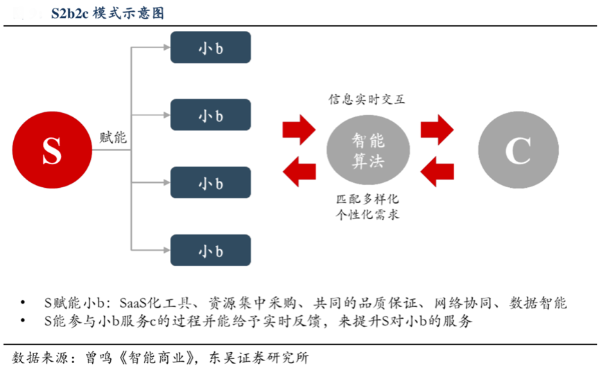 S2B2C依靠強(qiáng)大的產(chǎn)業(yè)鏈經(jīng)營驅(qū)動,依托強(qiáng)大的“產(chǎn)業(yè)品牌”號召力,通過SAAS對品牌進(jìn)行強(qiáng)大賦能,推動產(chǎn)業(yè)品牌的精神傳播,以品質(zhì)、價值來引領(lǐng)小B端品牌經(jīng)營,以專業(yè)、規(guī)范來指導(dǎo)小B端商業(yè)經(jīng)營,強(qiáng)化C端的商品交易及消費(fèi)服務(wù),提升產(chǎn)業(yè)互聯(lián)網(wǎng)經(jīng)營的整體魅力。