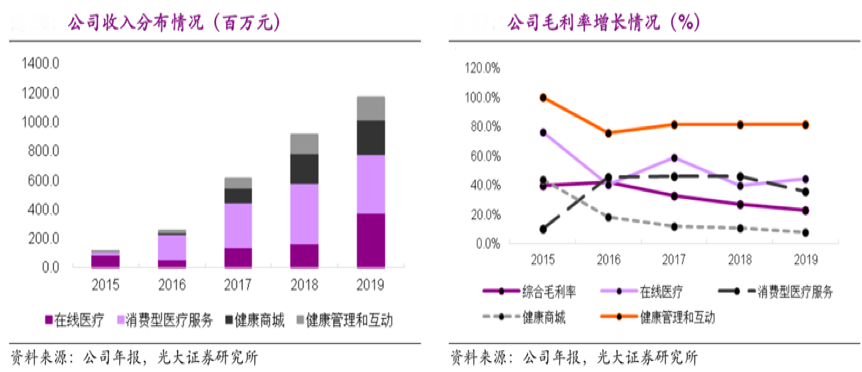 經(jīng)典案例:據(jù)平安公司年報(bào)、光大證券研究所等綜合資訊表明,2019 年,平安好醫(yī)生在線醫(yī)療的業(yè)務(wù)收入為人民幣 8.58 億元(+108.9%),其中下半年收入 5.2億元(+135%),呈現(xiàn)加速增長趨勢,主要來自于會(huì)員服務(wù)類產(chǎn) 品(包括就醫(yī) 360、平安好醫(yī)生私家醫(yī)生)、及伴隨在線問診服務(wù)產(chǎn)生的電子處方銷售等業(yè)務(wù)的增長。