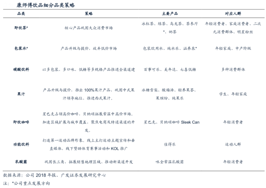 經(jīng)典案例:根據(jù)公司2018年報、廣發(fā)證券發(fā)展研究中心等綜合資訊表明,2019年康師傅推出高端產(chǎn)品即飲茶產(chǎn)品“茶參廳”和“烏龍系列”,同時積極進軍果汁、碳酸飲料、乳飲料、咖啡飲料及運動飲料等細分領(lǐng)域,創(chuàng)新產(chǎn)品口味、包裝和規(guī)格,“產(chǎn)品根基”更加堅實。