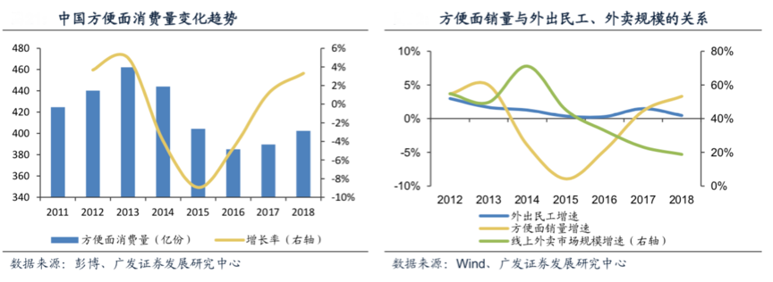 經(jīng)典案例:根據(jù)彭博、廣發(fā)證券發(fā)展研究中心等綜合資訊表明, 2018年中國方便面銷售額同比增長 8.0%,市場回暖持續(xù)。根據(jù)弗若斯特沙利文預(yù)測,估計到2021年方便面市場的零 售額將達到人民幣937億元,2016年至2021年的復(fù)合增長率約為2.9%,且方便面銷量與外出民工增長量呈“正相關(guān)關(guān)系”。