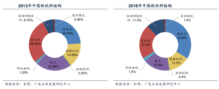 經(jīng)典案例:根據(jù)彭博、廣發(fā)證券發(fā)展研究中心等綜合資訊表明,2018年中國軟飲料以茶飲料、瓶裝水及碳酸飲料等為主,消費者對無糖、低卡等標志更加敏感,相關(guān)產(chǎn)品有很大上升空間。瓶裝水市場由中平價水主導(dǎo),康師傅市占率49.3%,多品類、多場景的有效串聯(lián)可以助力企業(yè)更快發(fā)展。