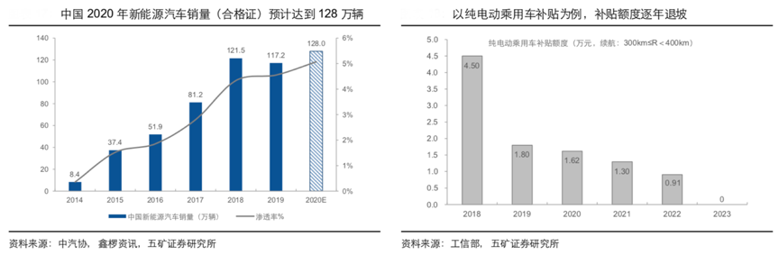 經典案例:根據中汽協、鑫欏資訊、工信部及五礦證券研究所等綜合資訊表明,2020 年 10 月 24 日,上海市出臺更加嚴厲的外地牌照車輛限行政策,結合上海針對非營運車輛免費發放新能源專用牌照政策,間接給予新能源汽車出行的路權支持。目前中國新能源汽車的保有量尚不足2%,在補貼退坡后,各類消費扶持政策以及模式創新(例如車電 分離) 有望接力,調動對于燃油車的置換需求 。