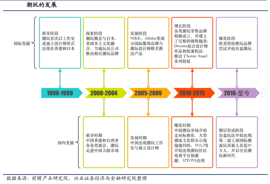 經典案例:根據前瞻產業研究院、興業證券經濟與金融研究院等綜合資訊表明,自 2011 年泡泡瑪特開出線下第一家門店到 2020 年成功開出 200 余 家門店和 1000 余家機器人商店,成功的商業化運作為潮玩開辟了全新道路,價格也相對親民,幾十元到幾百元不等,Sonny Angel 和 Molly 先后俘獲了大量新一代城市年輕人的心。