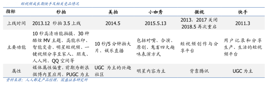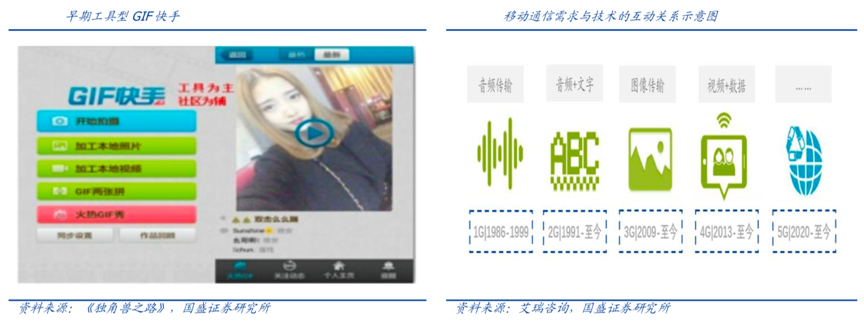 經典案例:根據《獨角獸之路》、艾瑞咨詢、國盛證券研究所等綜合資訊表明,2011 年,GIF 快手的用戶以動圖愛好者為主,他們將 GIF 快手作為工具產品,創作后在微博等外部社區進行傳播,而 GIF 快手也積累了第一批用戶。之后快手通過版本迭代,強化內容屬性,從工具產品向短視頻 社區轉型。
