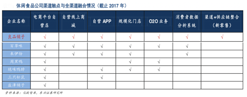 從億歐智庫(kù)、東興證券研究所等綜合資訊表明,各休閑食品公司經(jīng)過(guò)多年發(fā)展,大多已經(jīng)建立了電商平臺(tái)自營(yíng)店、線上商城、網(wǎng)絡(luò)分銷店等網(wǎng)絡(luò)商店,部分優(yōu)秀休閑食品企業(yè)建立了品牌連鎖專賣體系,多數(shù)休閑食品通過(guò)電商平 臺(tái)、自營(yíng) APP、線下門店、O2O 外賣等多觸點(diǎn)為消費(fèi)者提供產(chǎn)品,休閑食品電商新零售全渠道場(chǎng)景建設(shè)蔚然成風(fēng)。
