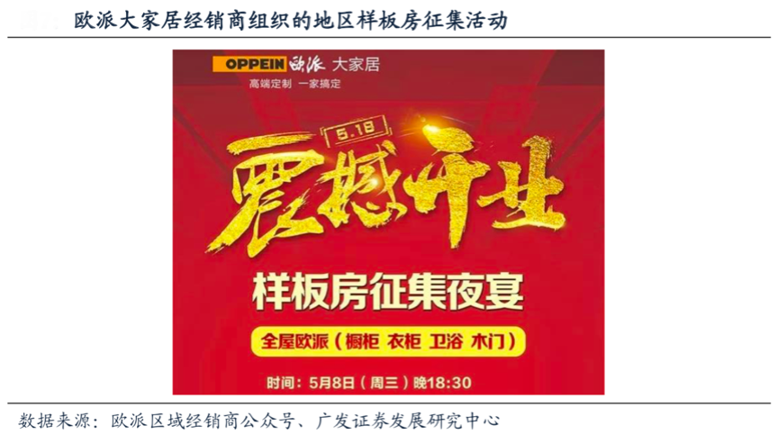 經(jīng)典案例:據(jù)歐派區(qū)域經(jīng)銷商公眾號(hào)、廣發(fā)證券發(fā)展研究中心等綜合資訊表明,近年來,索菲亞、全友、歐派都先后在不同城市推出小區(qū)樣板房征集活動(dòng),以拎包入住的便利、相對(duì)較低的裝修費(fèi)用與一筆不菲的租金去獲取愿意與其合作的業(yè)主,并在與業(yè)主商定參觀周期后利用包含品牌自身多品類產(chǎn)品的樣板房去接觸小區(qū)內(nèi)其他潛在客戶,拓寬自身消費(fèi)者接觸面積,增加客流。