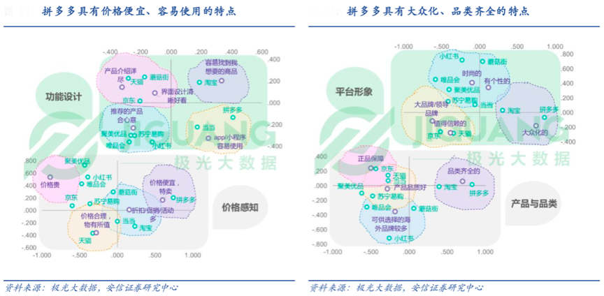 經(jīng)典案例:拼多多的APP功能設(shè)計(jì)比較全面,產(chǎn)品介紹詳盡,界面設(shè)計(jì)友好,同時其價格感知相對集中,“價格便宜”、“產(chǎn)品實(shí)惠”的形象深入人心,平臺形象也已經(jīng)融入品牌化、個性化的特點(diǎn),讓用戶值得信賴,其品類也日漸顯現(xiàn)出正品保障、品類齊全的優(yōu)質(zhì)形象,這大大彰顯了其優(yōu)質(zhì)、優(yōu)品、高價值的品牌體驗(yàn),商品競爭力與日俱增。