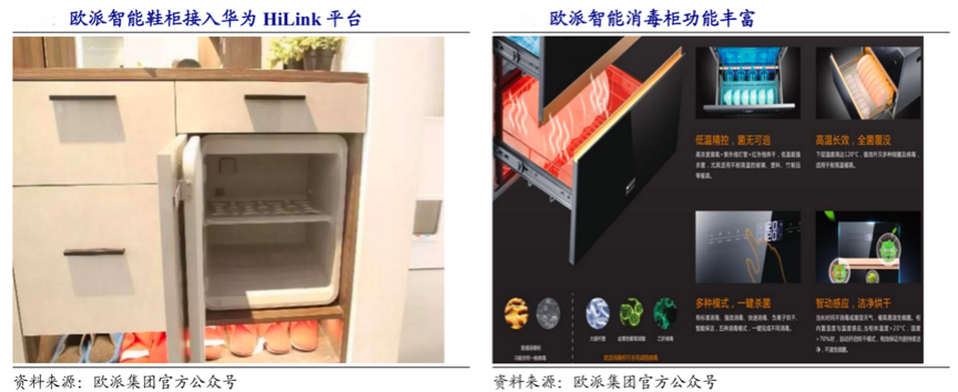 經典案例:根據歐派集團官方公眾號等相關資訊表明,2019年8月,歐派與華為達成戰略簽約,歐派家居將全面對接華為 HiLink 平臺,推進在家裝領域的智能化進程。在線下渠道,歐派將主推華為 HiLink 生態產品及全屋智能家裝方案,并聯合探索線下渠道營銷全屋智能方案套包。歐派也將獲得 HiLink 超過 3000 萬注冊用戶的流量入口。