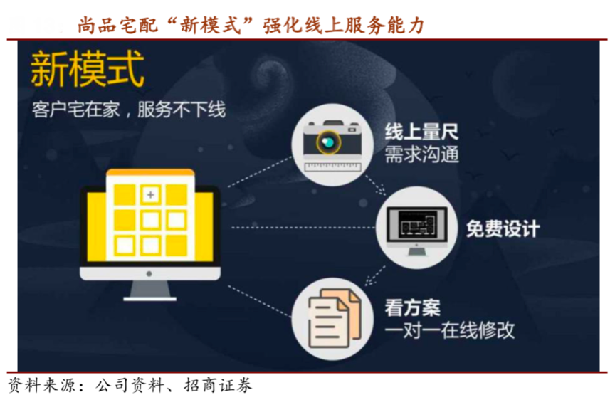 經典案例:根據尚品宅配公司資料、招商證券等綜合資訊表明,2020 年尚品宅配再度發力線上服務,全面啟動“線上門店”的形式,從總部到全國各地、2000多家終端門店,收錄了全國各個地區、各個小區的各種房型、不同風 格的設計案例,持續豐富“云設計”端的方案庫、產品庫、戶型庫,為消費者提供 線上量尺、免費設計、在線溝通方案等服務;其新模式大大強化了線上服務能力,大大提升了家居新零售的科技含量。