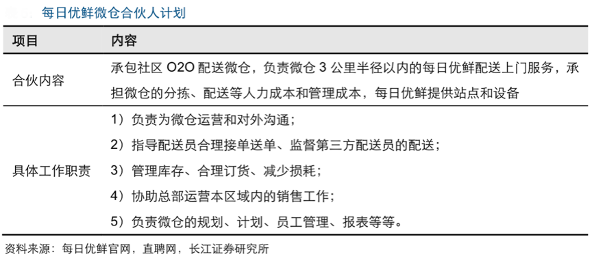 經(jīng)典案例:每日優(yōu)鮮,推進“微倉合伙人計劃”,廣泛招募“渠道合作伙伴”,由此完善物流網(wǎng)點配置,強化前置倉庫存管理、物流配送、上門服務(wù)等,統(tǒng)籌前置倉信息管理、計劃管理、會員服務(wù)等。