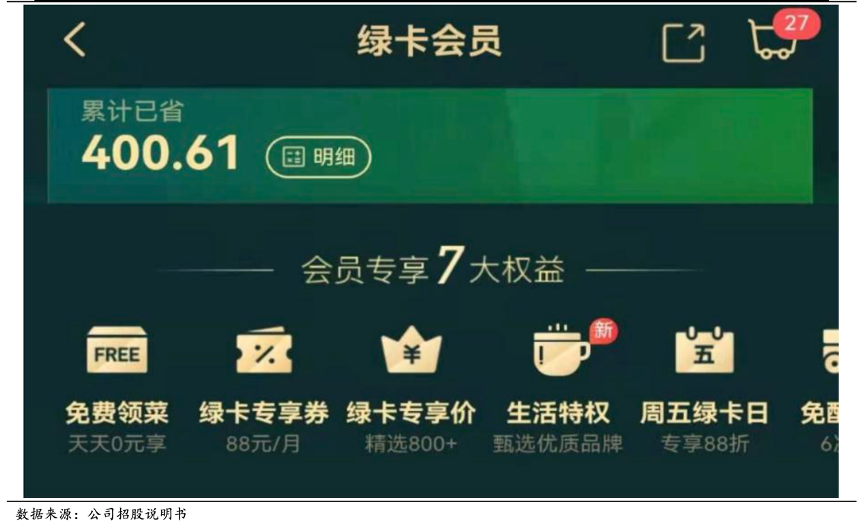 目前,叮咚有 4 種靈活的會員選擇計劃:(一) 以每年 88 元人民幣自動續 訂年度會員;(二) 每年108元人民幣的定期年度會員;(三) 每季度 30 元 人民幣自動續訂季度會員;(四) 每季度45元人民幣的定期季度會員資格。并且會員會享有“免費領菜”、“免費配送”等 7 項特權,增加客戶粘性。